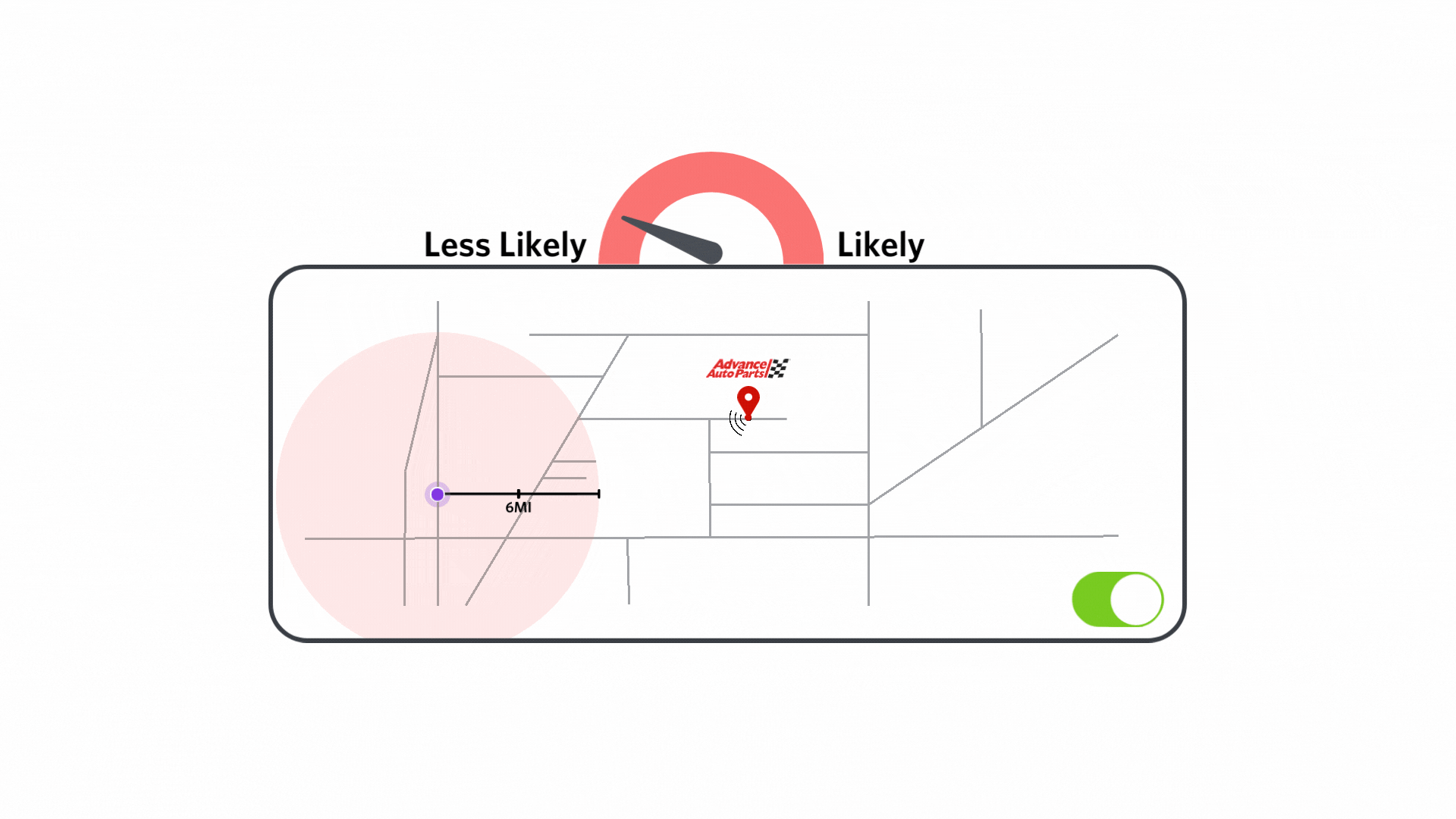 Here is our estimate of the likelihood you'll get a request based on your distance from a pickup location.